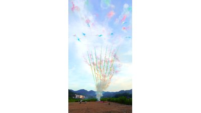 Red smoke post , red tiger tail , blue smoke post , crackling post , red tail to titanium salute .
